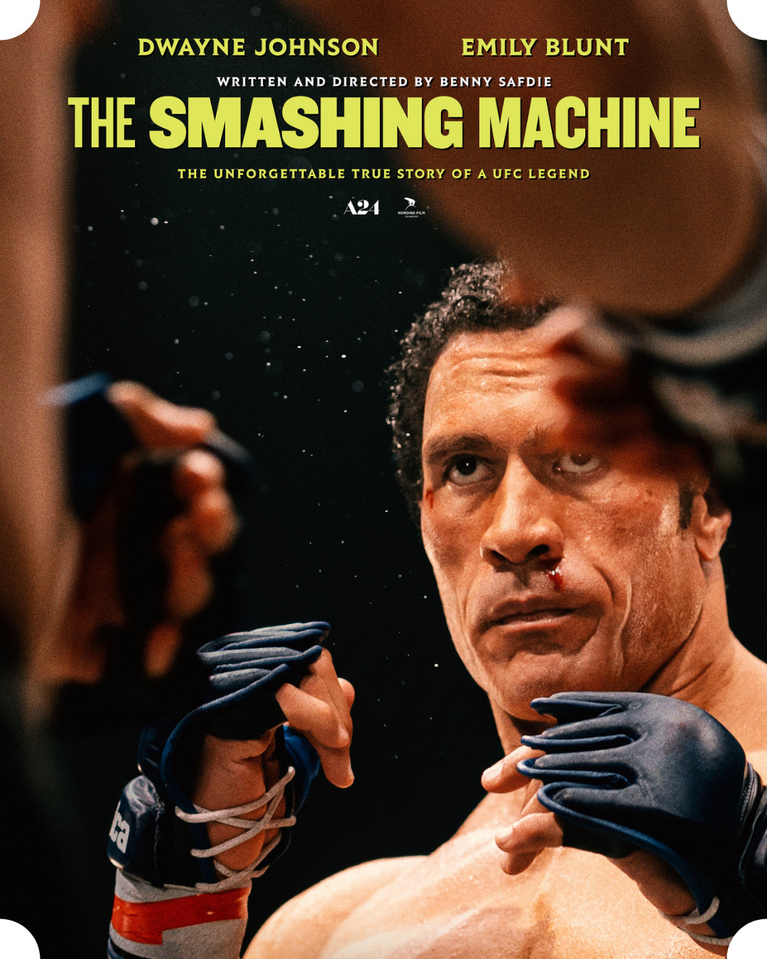 The Smashing Machine er et gripende biografisk drama fra regissør Benny Safdie, med Dwayne “The Rock” Johnson i rollen som MMA-legenden Mark Kerr – en rå kraft i buret, men en mann i konstant kamp med sine egne demoner utenfor. Ved hans side står Emily Blunt som Dawn, som elsker ham, men må kjempe en tidvis nytteløs kamp for å nå inn til ham emosjonelt.